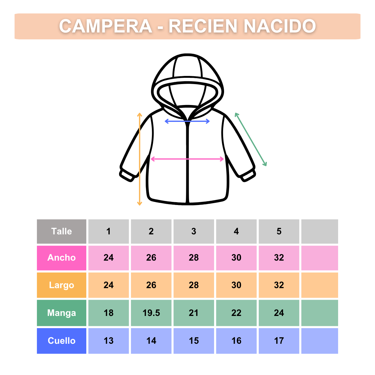 Talle 2: Largo 27,5cm. Ancho 25cm. Manga 19,5cm